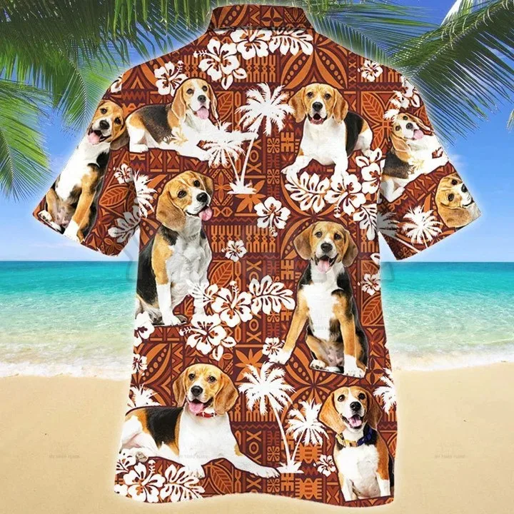 Beagle Red Tribal Pattern Hawaiian Shirt